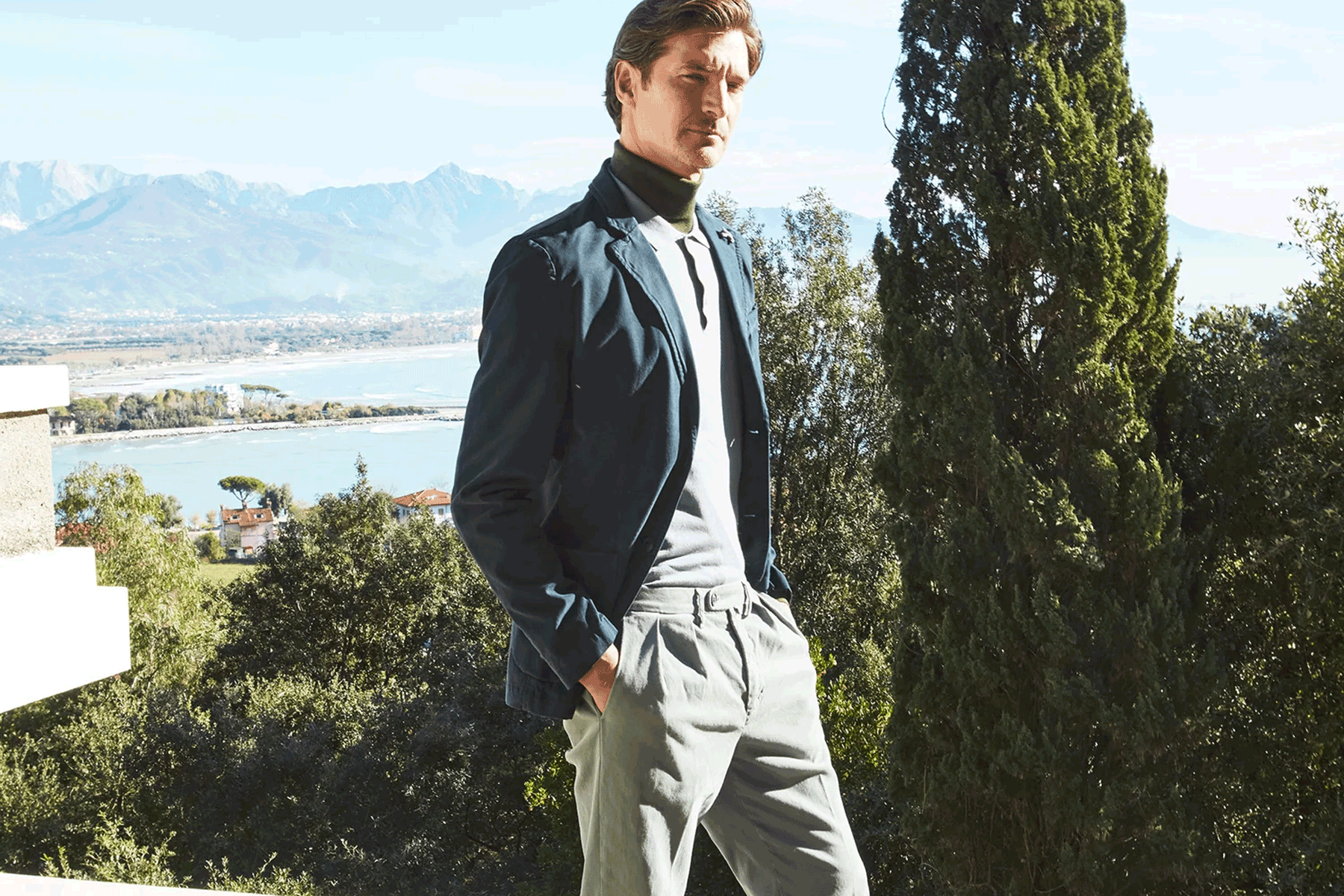De kleuren en sferen van deze unieke streek weerspiegelen zich in de herencollectie. Van levendige blauwtinten tot oranje nuances die overlopen in roze, en natuurlijke tinten zoals beige, wit en crème.