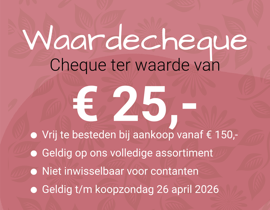 Profiteer van € 25,- voordeel! Het voorjaar is hét moment om je garderobe een frisse update te geven. Daarom hebben wij een aantrekkelijke actie voor je: t/m zondag 26 april (koopzondag) ontvang je bij besteding vanaf € 150,- direct € 25,- korting.